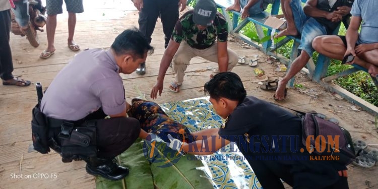 Petugas kepolisian ketika hendak membawa mayat bayi yang ditemukan ke Puskesmas Batu Ampar KALTENGSATU, Kuala Pembuang - Penemuan mayat bayi tidak berdosa di Desa Durian Kait, Seruyan, Kalimantan Tengah sempat viral di media sosial.